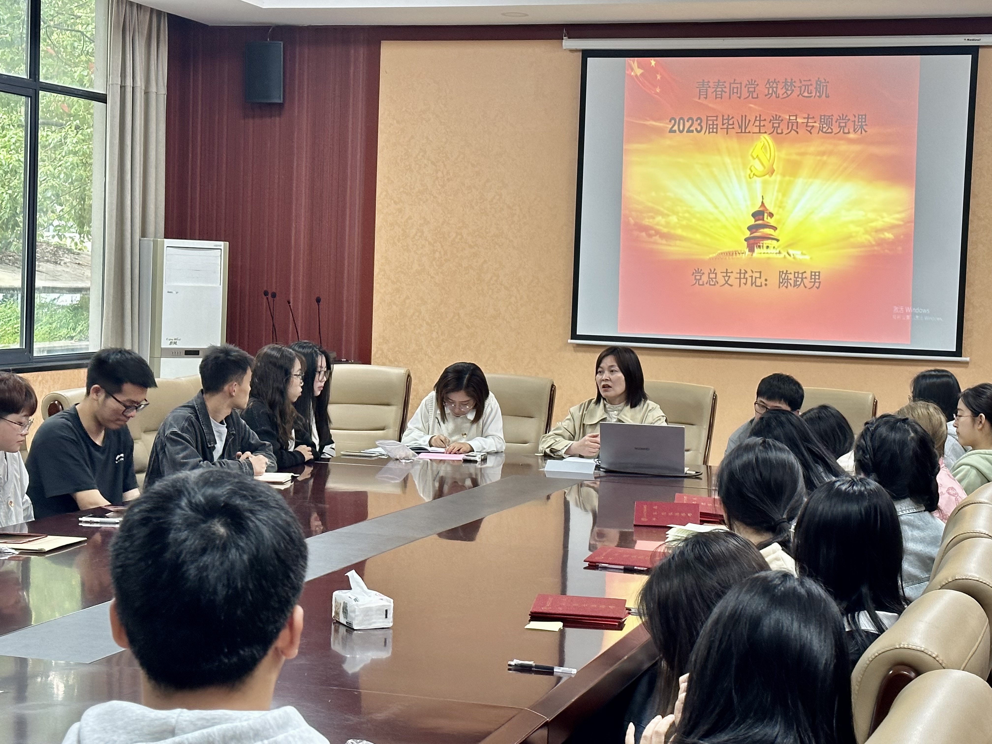 分院党总支书记陈跃男为同学们开展了“青春向党 筑梦远航”的主题党课。她分别从“增强党员意识,不负组织期望”、“坚持不断学习,争创一流业绩”、“接受教育管理,加强党性修养”、“珍惜最后的校园时光,做文明离校表率”以及“先锋担当,带头就业”等五个方面进行了深入浅出的党课教育。