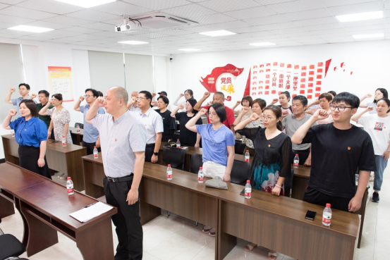 最后,参与活动的党员面对鲜红的党旗,紧握右拳,重温入党誓词。“我志愿加入中国共产党,拥护党的纲领,遵守党的章程,履行党员义务……”,在激昂的宣誓声中,每位党员深切地领悟到了新时代党员的精神追求,进一步强化了全心全意为人民服务的使命担当,坚定了认真履行党员责任义务的决心。