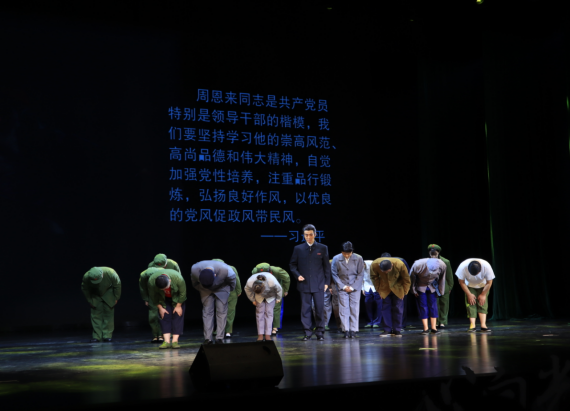 “周总理一生不忘初心、勤政为民,是中国共产党的杰出楷模。我们今天学习周恩来同志,就是要始终做到不忘初心、坚守信仰,用实际行动坚持和发展中国特色社会主义,为实现社会主义远大理想而奋斗。”马克思主义与法学院党总支书记陈跃男老师在话剧结束后讲的这段话,道出了对周总理的崇高敬意和无限怀念。
