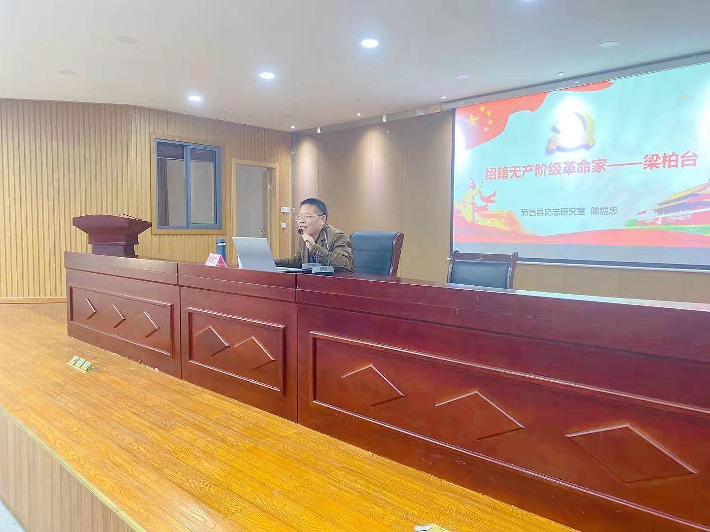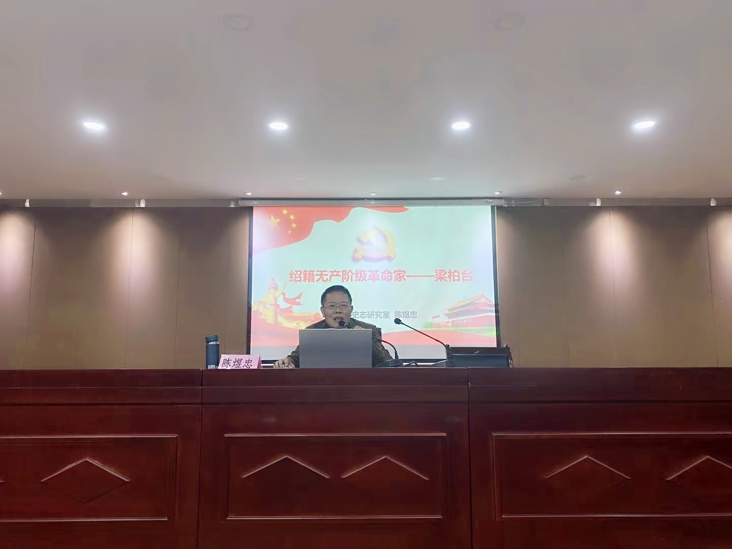 11月12日,梁柏台法学院举办以“绍籍无产阶级革命家梁柏台”为主题的讲座。本次讲座特邀新昌市史志室副主任、绍兴市社科联理事陈煜忠主讲,梁柏台法学院陈立峰老师主持。