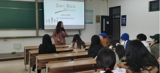 为进一步加强学生干部队伍建设,提升团队的凝聚力,提高学生干部的综合素质和工作能力,保证新学期学生工作平稳有序进行,3月2日下午2点,梁柏台法学开展了新学期第一次学生干部培训及工作分享会。学生会全体学生干部及各班团支书参加本次分享会,培训会由辅导员夏莹主持,梁柏台法学院党总支书记陈跃男莅临指导。