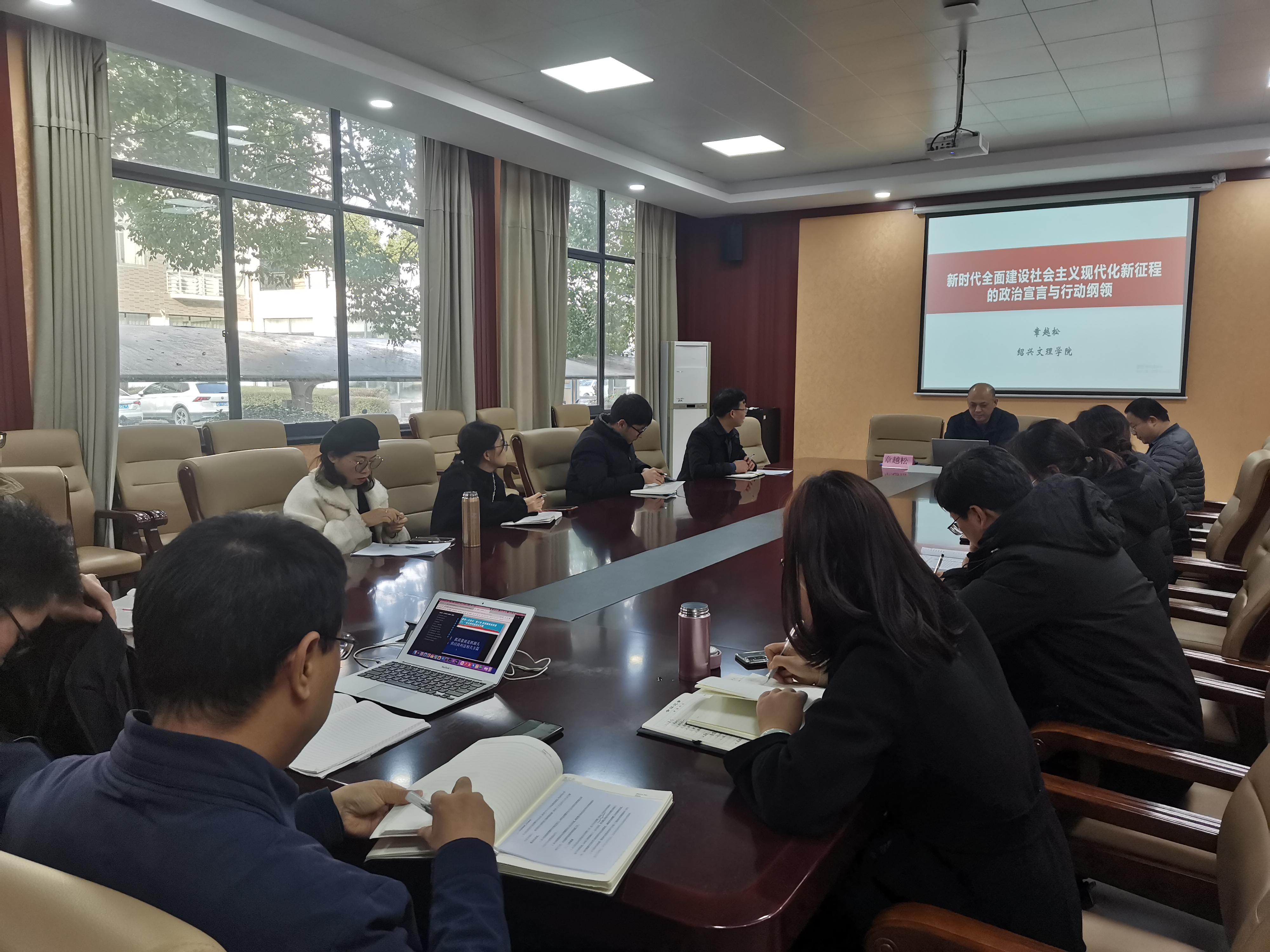为深入学习宣传贯彻党的二十大精神,12月6日下午,马克思主义分院举行党的二十大精神专题学习会暨党的二十大精神融入思政课集体备课会。会议邀请绍兴文理学院马克思主义学院党委副书记、院长章越松教授做专题讲座,马克思主义分院负责人、专兼职思政课教师参加会议。