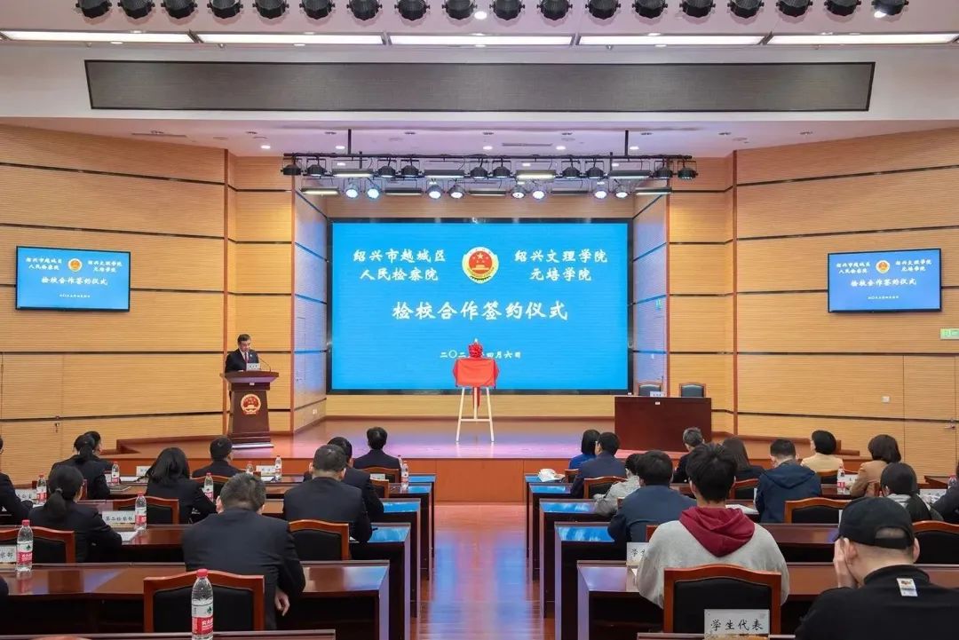 越城区人民检察院党组成员、政治部主任吴新斌和绍兴文理学院元培学院党委副书记、纪委书记俞国芬共同为“教学与就业实习基地”揭牌。