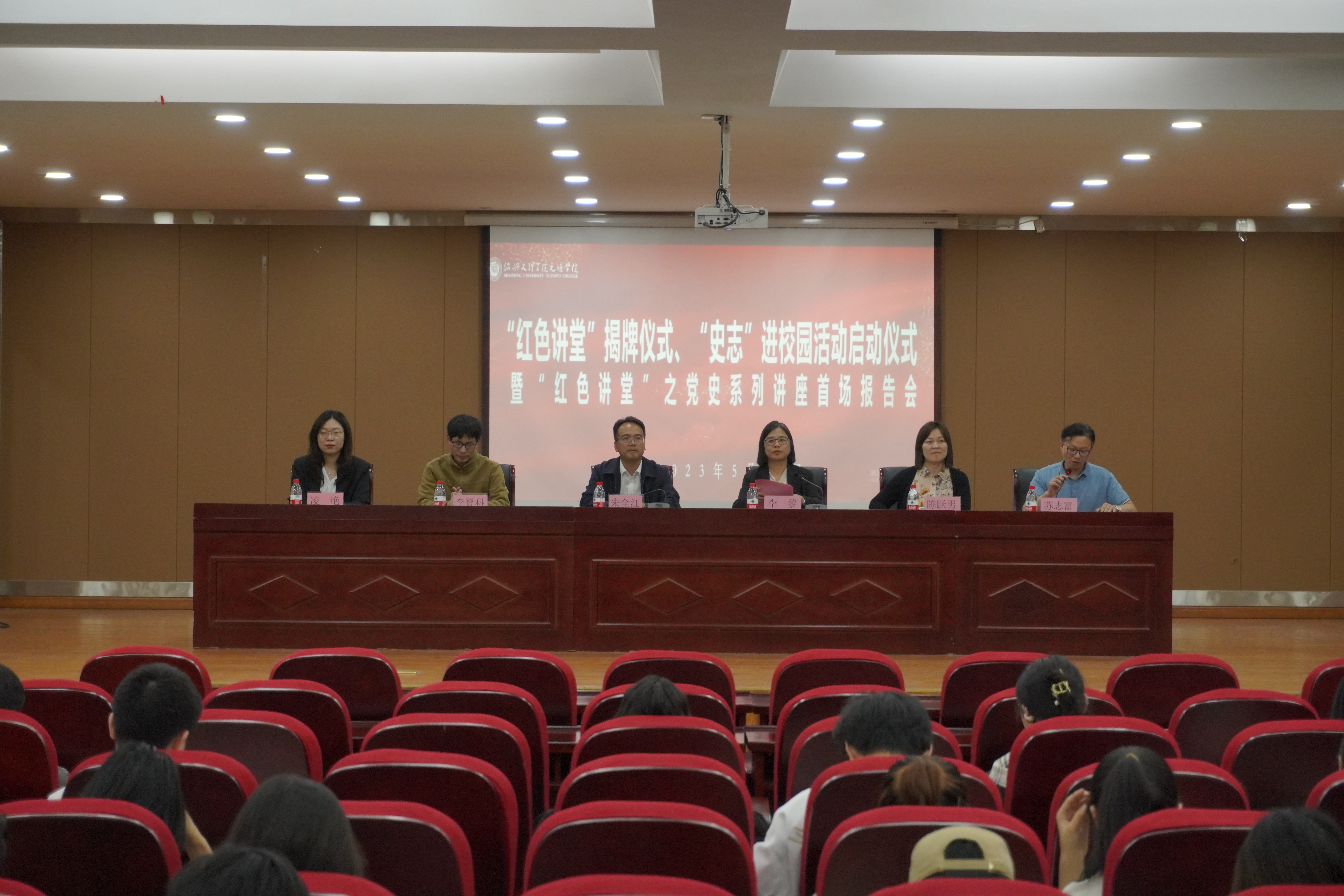 5月24日,我院顺利举行“红色讲堂”揭牌仪式、“史志”进校园活动启动仪式暨“红色讲堂”之党史系列讲座首场报告会。绍兴市委党史研究室主任朱全红,学院党委委员、副院长李黎,以及市委党史研究室相关负责人、马克思主义分院负责人、学院师生代表参加活动。