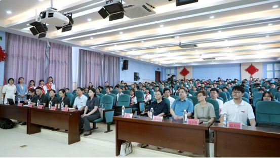 我院王昊同学作为法治宣讲团代表上台接旗。随后法治辅导员为同学们带来了“法治开学第一课”,以青少年多发的寻衅滋事罪、故意伤害罪、盗窃罪等为例,告知同学们无论是在校园还是在校外都应增强自我防范意识,知法守法用法。