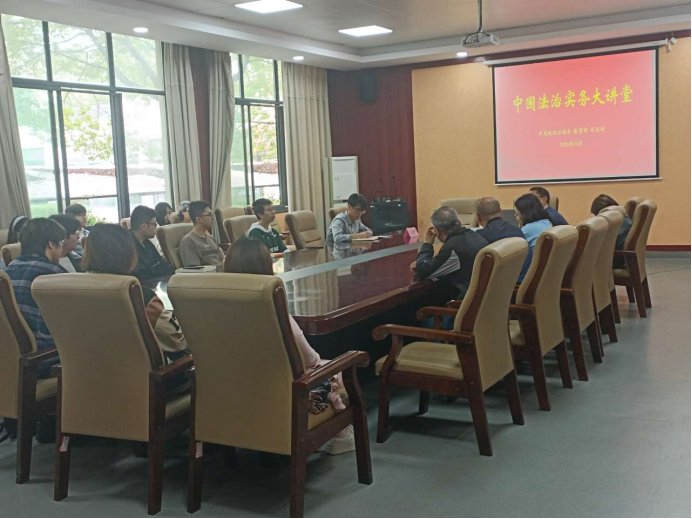 为深入学习贯彻习近平法治思想,贯彻落实党的二十大精神和二十届三中全会精神,贯彻落实全国教育大会精神,完善以实践为导向的法学院校教育培养机制,将生动的中国法治实践转化为高质量的中国法学金课,提升法学人才自主培养质量。教育部高等教育司于2024年10月17日上午在中国人民大学举办中国法治实务大讲堂,梁柏台法学院在教学楼3-106会议室设立线下分会场,组织师生收看中国法治实务大讲堂启动仪式暨第一讲。教务处副处长刘泓鑫、梁柏台法学院党总支书记陈跃男、副院长陈金东、教研室主任、专业老师及部分学生参加。