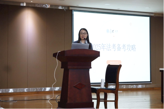 为使 2022 级法学专业同学了解法考信息,明晰法考对于未来就业的关键助力作用,从而为今后的法律职业生涯打下坚实基础,2024 年 11 月 12 日下午,梁柏台法学院特邀厚大法考三国法独家授课教师、上海政法大学教授殷敏开展 “2025 年法考备考攻略” 主题讲座,为法学专业的同学们带来了一场专业且深入的备考指导。