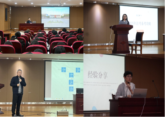 我院深知职业规划对学生的重要性,组织了多场针对性强的讲座以及分享会,助力学生明晰未来方向。一方面,开展法考、考研、考公讲座,邀请业内权威讲师,为同学们详细解读各类考试的政策变化、备考要点及技巧,分享实战经验。同时,还组织考研、考公、法考优秀学子经验分享会,让 “过来人” 现身说法,讲述备考过程中的酸甜苦辣,传授宝贵经验,帮助同学们少走弯路。另一方面,积极邀请律师、专家进校开展法律相关讲座,带来法律实务前沿动态和专业领域最新研究成果,拓宽学生视野,进一步为同学们的职业发展添砖加瓦。