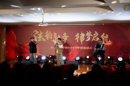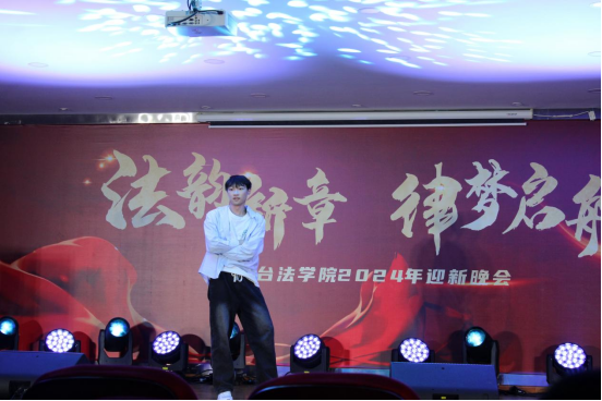 少年强则国强,少年智则国智,党员之家的同学们带来的话剧《穿越时空的秘密》用独特的演绎方式,为同学们展示了中国发展进程。纵使前路迢迢,艰难险阻,不忘强国有我,必将振兴中华!律动的音符,舞动的身姿,王泽成同学的舞蹈《Attention》带动了现场的气氛,洋溢着青春活力。生而平凡,不惧平凡,张圣杰、龙金红同学以及邱天培老师带来的吉他弹唱《平凡之路》诉说着平凡之人的故事,希望同学们今后脚踏实地,走最平凡的道路,做最成功的人。晚会的最后是由法学会、学生会、分院党员之家的23级同学们带来的大合唱《法学欢迎你》,悠扬的乐曲,真挚的祝福,向24级新生表示热烈的欢迎。