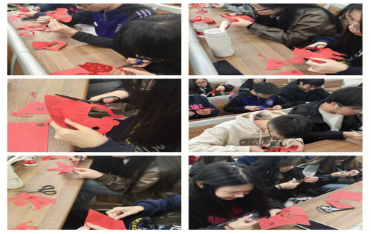 一张纸、一把刻刀、一双巧手、一份匠心,方寸之间,剪出玲珑世界。“我们一同完成剪窗花和贴窗花的环节,不仅能够美化宿舍生活环境,还寄托着大家对生活理想的追求和渴望。”法学2402班的团支书黄佳媛笑着介绍道。