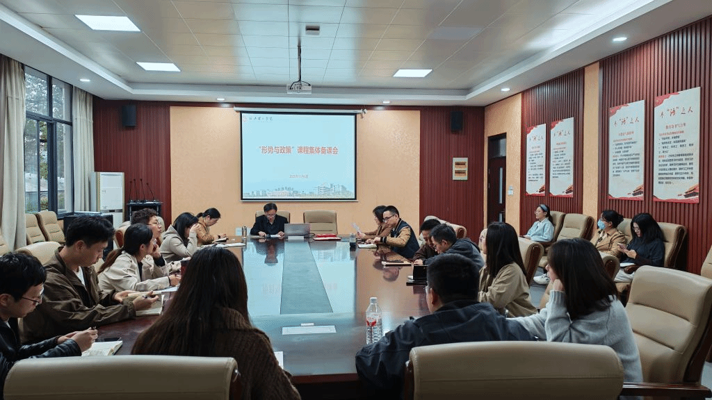 为深入学习贯彻习近平新时代中国特色社会主义思想和党的二十届四中全会精神,扎实推进党的创新理论“三进”工作,切实提升“形势与政策”课教学的针对性、有效性和吸引力,11月6日下午,马克思主义学院在红色学府3号楼106会议室召开2025年秋季学期“形势与政策”课集体备课会。学院党政班子成员及本学期承担该课程教学任务的专兼职思政课教师参加会议。