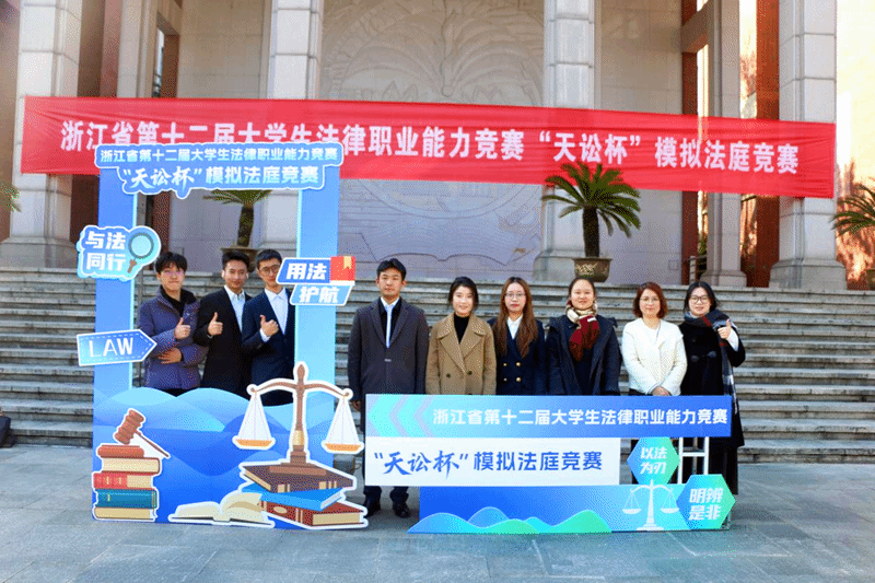 近日,浙江省第十二届大学生法律职业能力竞赛“天讼杯”模拟法庭比赛圆满落幕。本次竞赛由浙江省大学生科技竞赛委员会主办,浙江工商大学与浙江工业大学联合承办,共吸引全省30所高校的32支队伍、250余名选手同台竞技。经过激烈角逐,最终比赛评选出一等奖2项、二等奖6项、三等奖8项。我校参赛队伍喜获三等奖。
