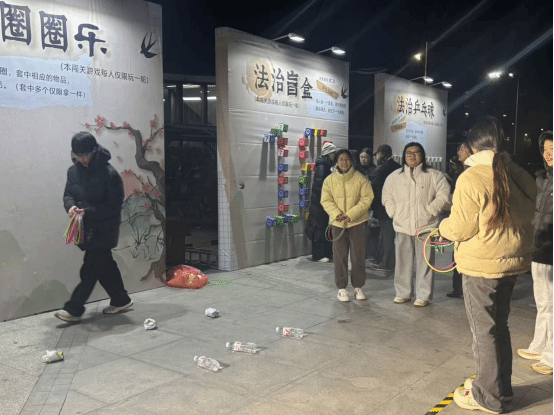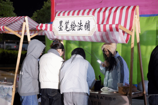 在各个趣味普法摊位前,法学学子们忙碌的身影构成了一道亮丽的风景线。“法治乒乓球”“墨笔绘法”等创意环节,从规则讲解到现场引导,都由同学们全程负责。在法律知识问答区,负责该摊位的同学们巧妙将法律题目与盲盒结合,涵盖《刑法》《未成年人保护法》等多个领域。市民通过抽取盲盒答题,在学子们耐心细致的讲解中,于轻松互动里学习法律知识。“扔乒乓球也能学法律,真是太有趣了!”参与群众的称赞,正是对这群年轻法律人创新普法方式的最佳肯定。