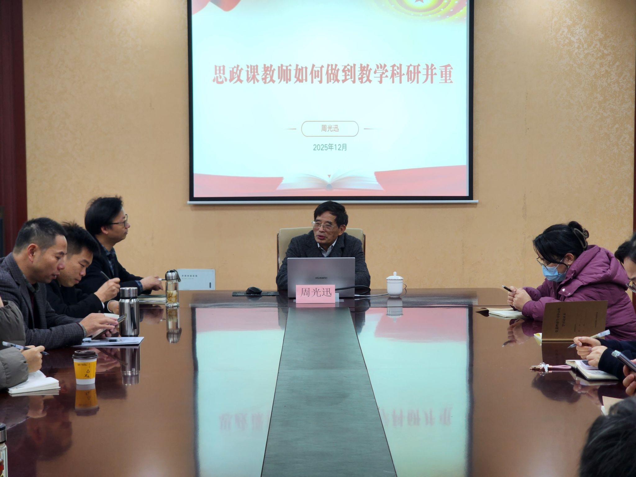 讲座中,周教授以思想政治理论课历史沿革为切入点,系统梳理了改革开放以来我国高校思政课建设的五个关键发展阶段,提出并阐释了思政课教师需树立“教研相融”的理念、领悟开展科研工作的三层境界、把握新时代优秀思政课教师的基本内涵。